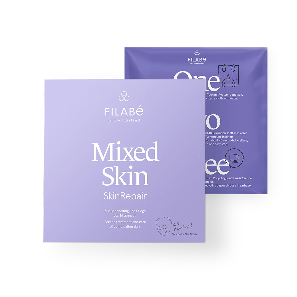 Mixed Skin enthält auserlesene Wirkstoffe, welche auf die Bedürfnisse deiner Haut abgestimmt sind. Diese werden bei der Anwendung mit Wasser aktiviert. Frei von Zusatzstoffen. Alle Filabé Produkte aus der SkinRepair Serie enthalten den Wirkstoff Lecithin auf Sojabasis — Lecithin wirkt nicht nur hautpflegend, sondern fördert gleichzeitig die Aufnahme von Wirkstoffen in die Haut.